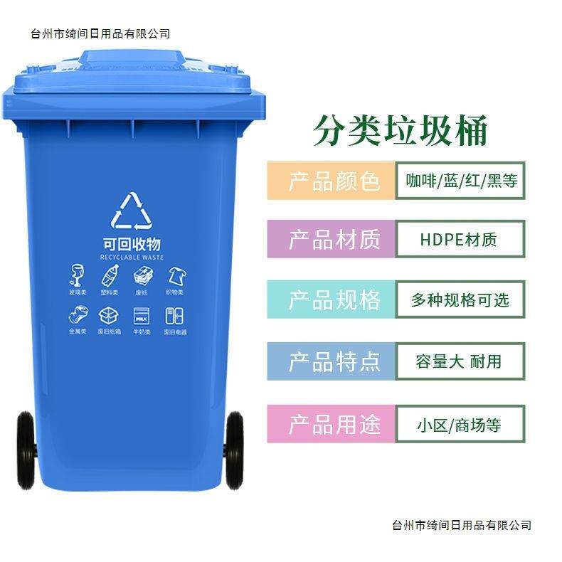户外环卫垃圾桶大容量分类商用小区240升物业室外加厚大号带盖轮