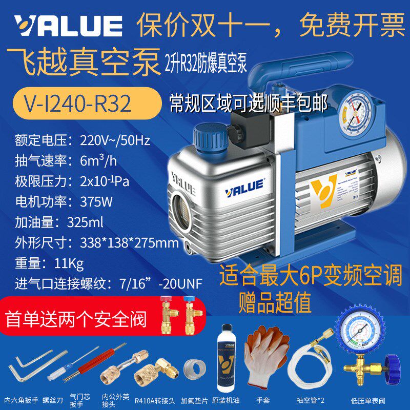 飞越V-I240-R32抽真空泵双级2升制冷空调维修防爆2升R32新款上市