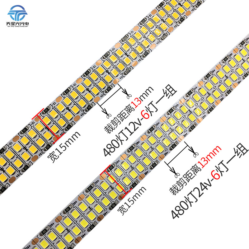 天星光2835双排led灯带240-480灯高亮高显指家装工程商照防水灯条