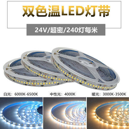 led贴片三色灯带2835双色温12V暖白24v调光调色240灯珠线性灯吊顶