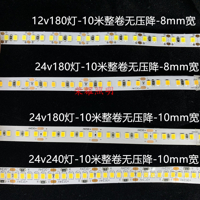 无压降灯带12v24v8mm宽180灯240灯10米20米无降压红绿蓝黄LED软条