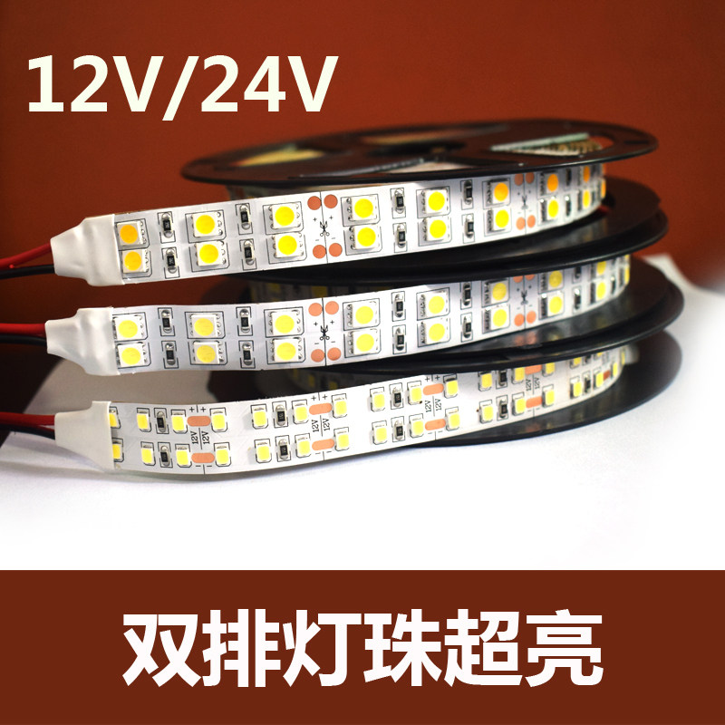 LED低压灯带双排灯240珠24V超亮家装自粘吊顶货柜套管防水软灯条