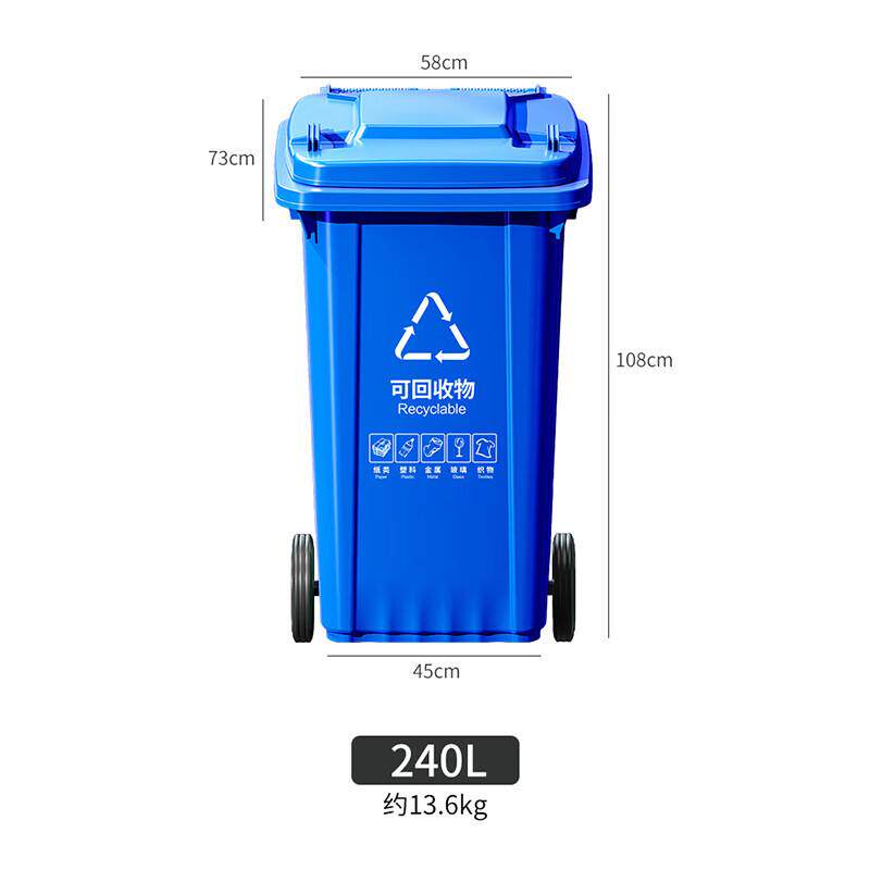 户外分类垃圾桶特厚240升商用带盖室外物业分类大容量可挂车环卫