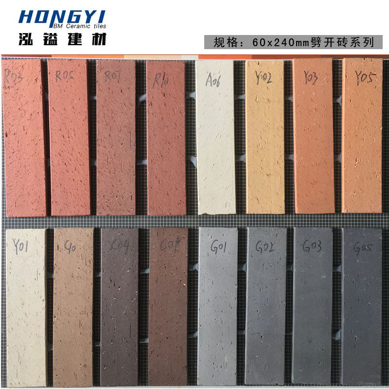 劈开砖6*24 60*240拉毛砖黄红灰色仿古外墙砖手工砖/别墅小区阳台