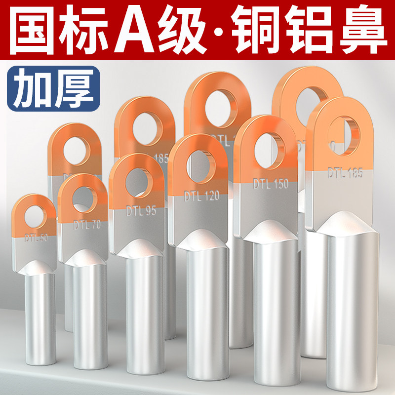 国标DTL铜铝鼻接线端子16/25/35/70/95/120/185/240平方过渡线耳