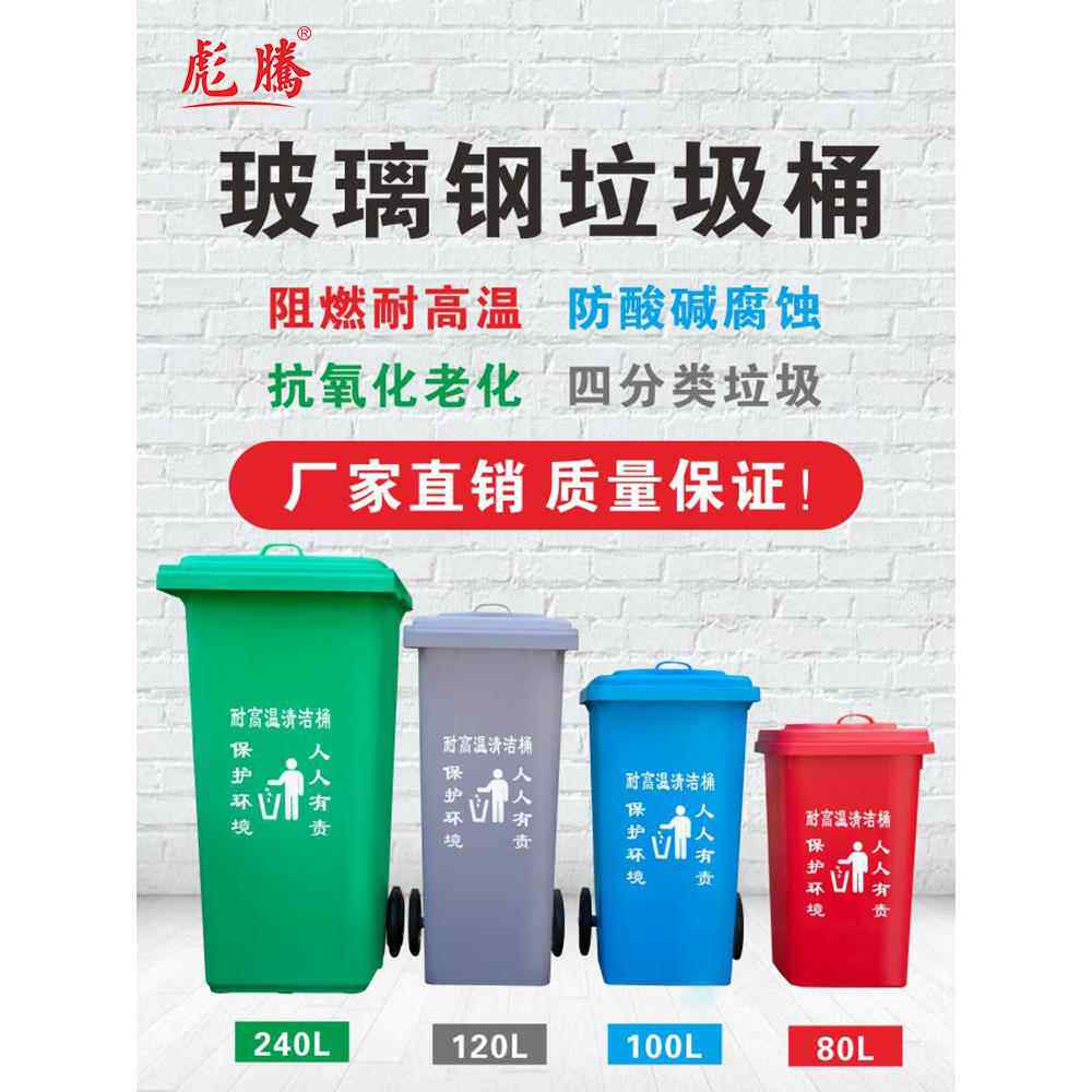 玻璃钢户外垃圾桶大号环卫小区240L商用船舶分类120l升阻燃耐高温