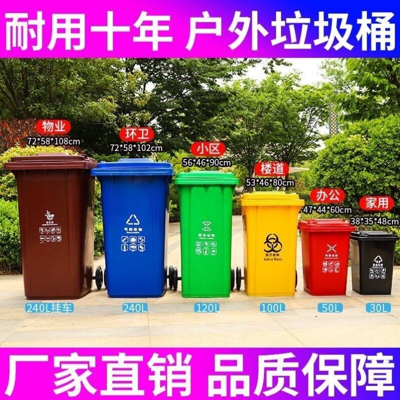 户外商用小区物业240室外加厚街道大号环卫垃圾桶大容量分类厨房