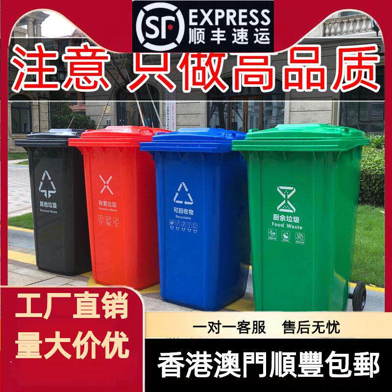 户外环卫垃圾桶大容量分类商用小区大号240L升室外加厚带盖箱街道