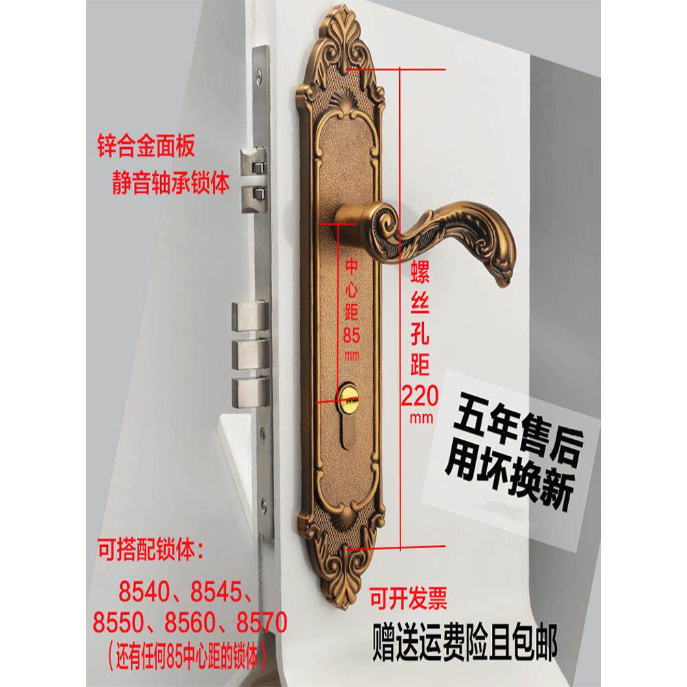 欧洲覆古对开双门锁房子木门黄青铜85距离300长大锁240锁体手柄