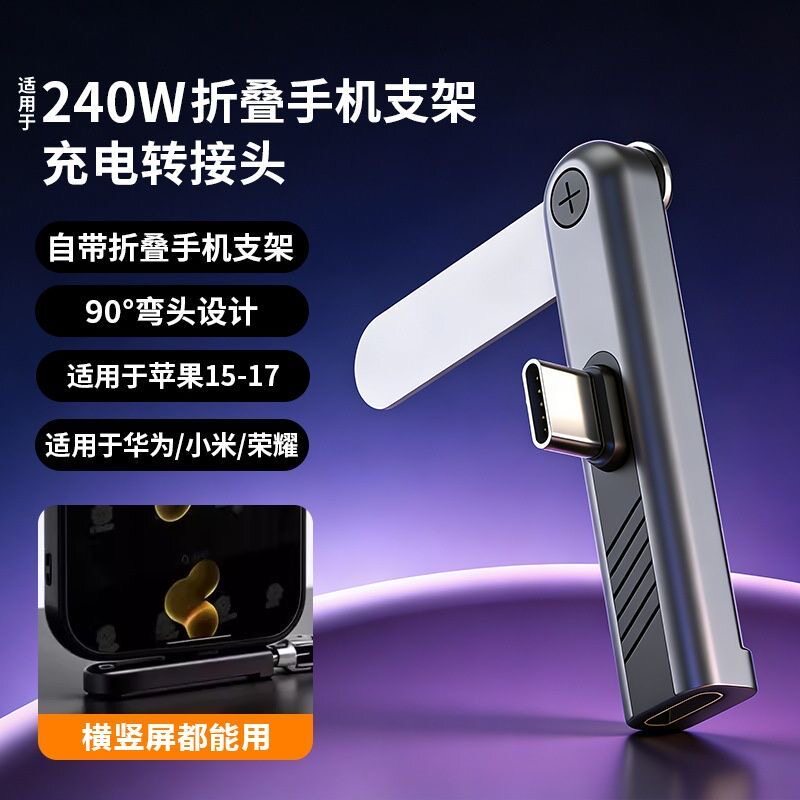 240w快充折叠手机支架充电转接头适用华为小米苹果iPhone15/17多功能二合一横屏追剧竖屏直播游戏转换器接口
