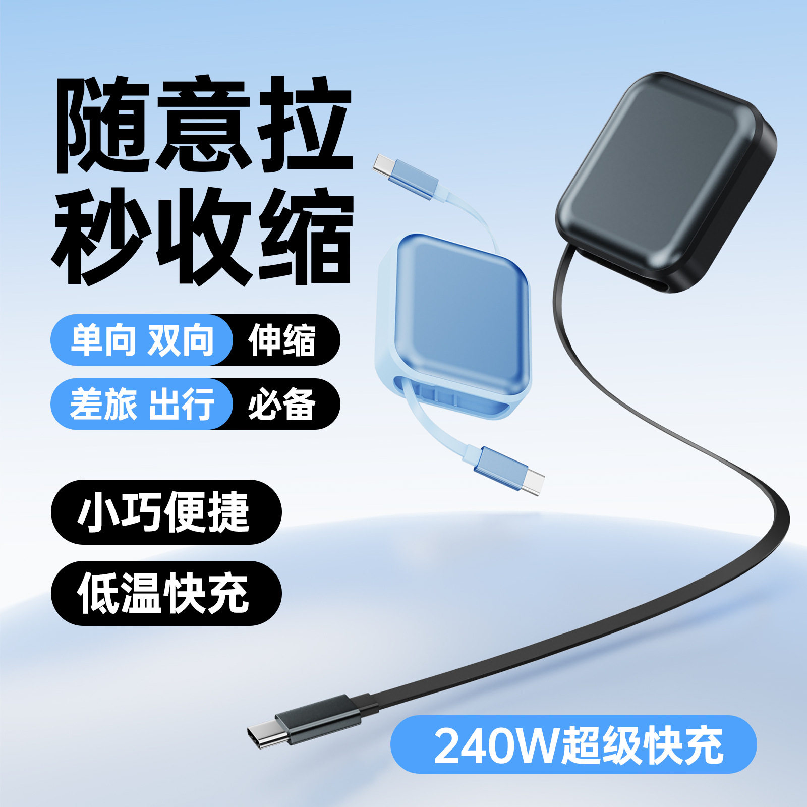 240W伸缩超级快充双typec数据线适用苹果17华为手机车载收纳便携