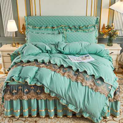 极速新品欧式夹棉牀裙四件套公主风蕾丝牀罩双L人18m纯色牀单240