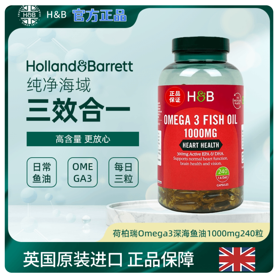 荷柏瑞英国进口深海鱼油胶囊1000mgomega3正品240粒