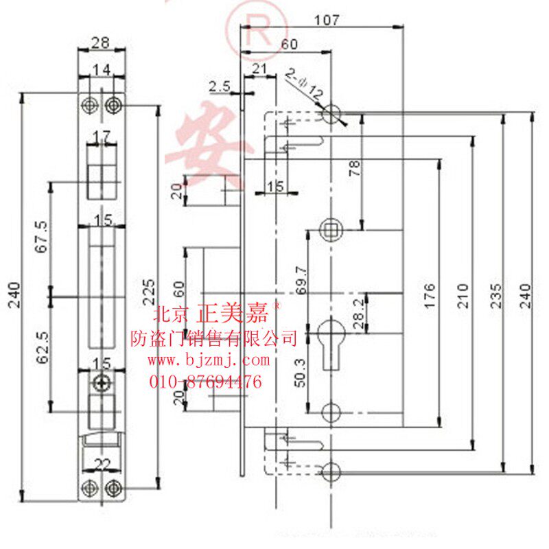 星月神防盗门智能锁保德安11-1双快锁体28X240配套改装锁体整套锁