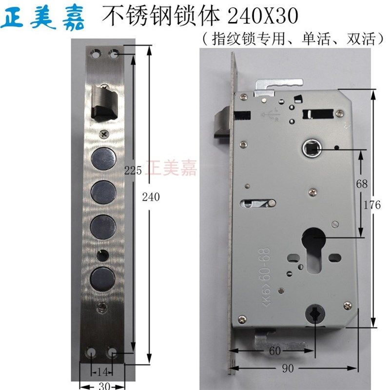 正美嘉 带拨头智能锁锁体双快双活6068尺寸齐全304不锈钢24X240
