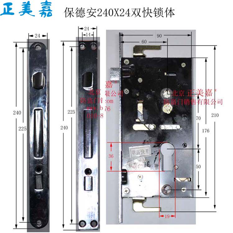 新多防盗门保德安21型双活单活240X30锁体 12型圆柱大锁体