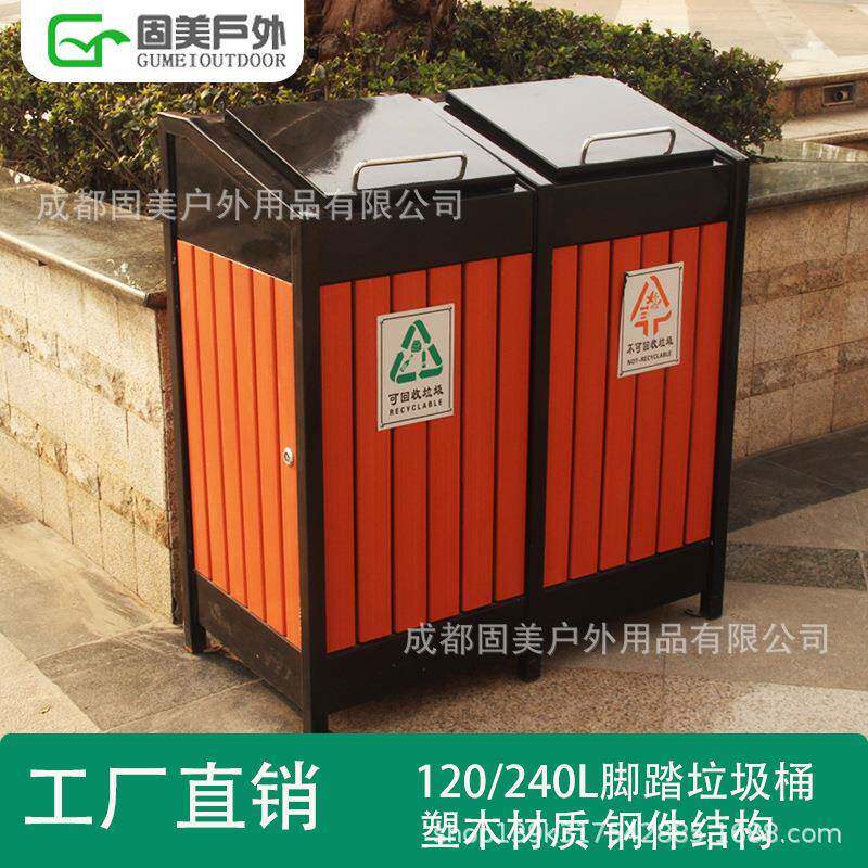 户外脚踏垃圾箱120/240L大号缓降果皮箱钢木桶垃圾桶道路小区广场