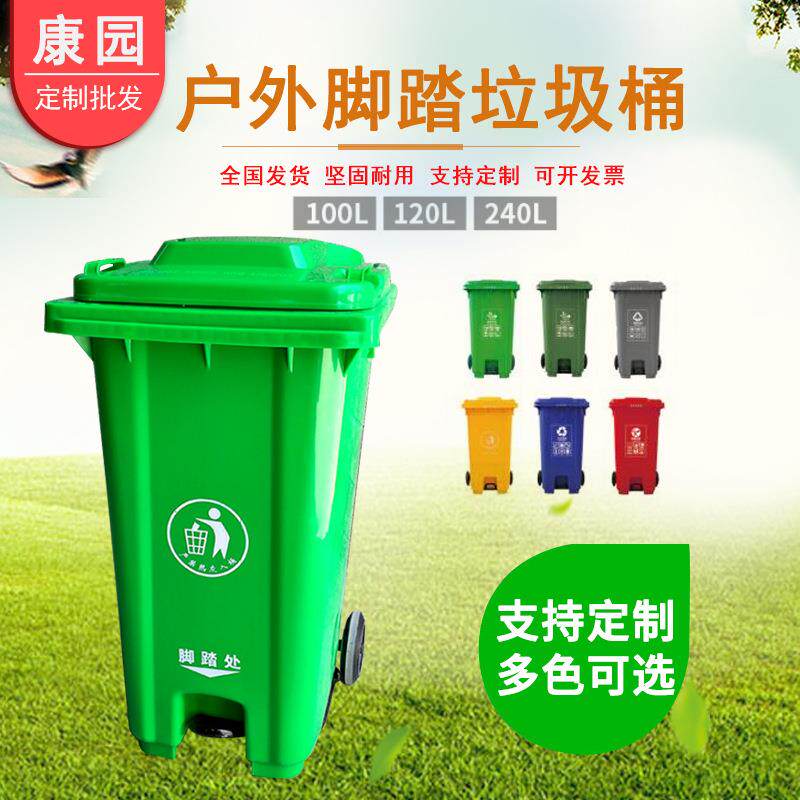 户外环卫垃圾桶大容量120L加厚脚踏带盖240L环卫塑料分类垃圾桶