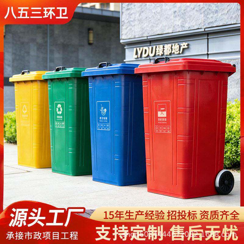 240L户外大号垃圾桶物业社区商用分类桶加厚环卫带盖子可挂车桶