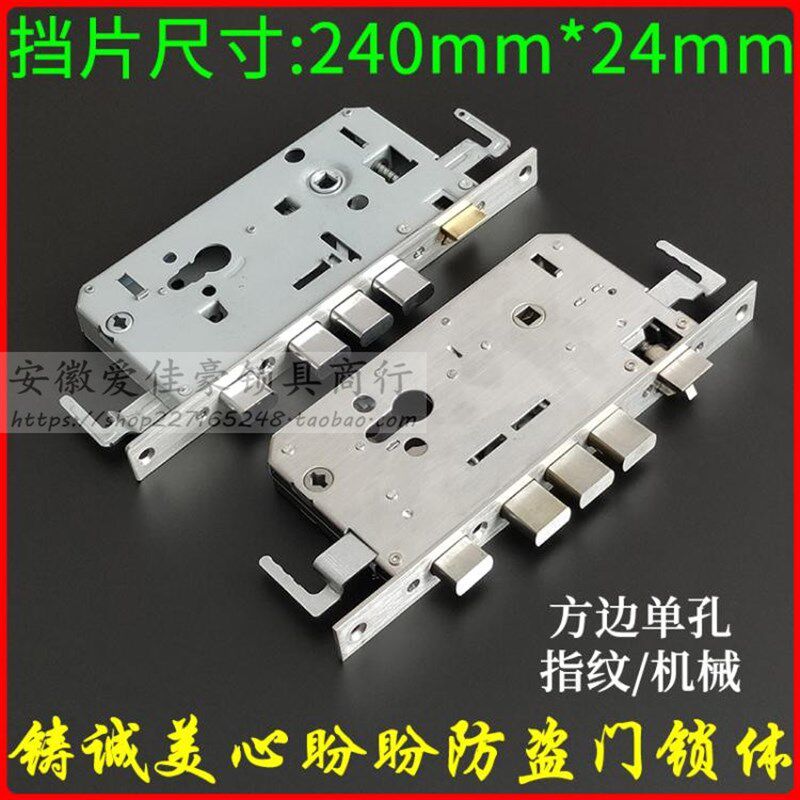 钢面铜舌方边单孔机械锁体240*24mm 铸诚美心防盗门全钢指纹锁体