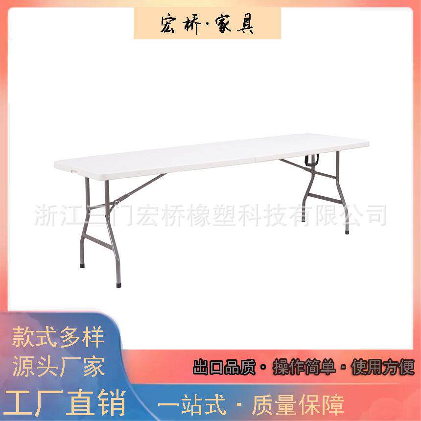 吹塑户外折叠餐桌240cm长方桌白色休闲便携式折桌8FT对开饭桌