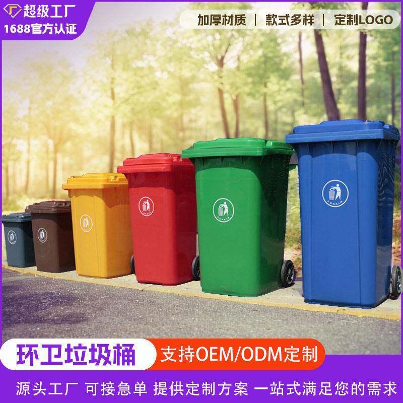 加工定制240L大容量带轮子塑料挂车垃圾桶可推果皮箱户外垃圾桶