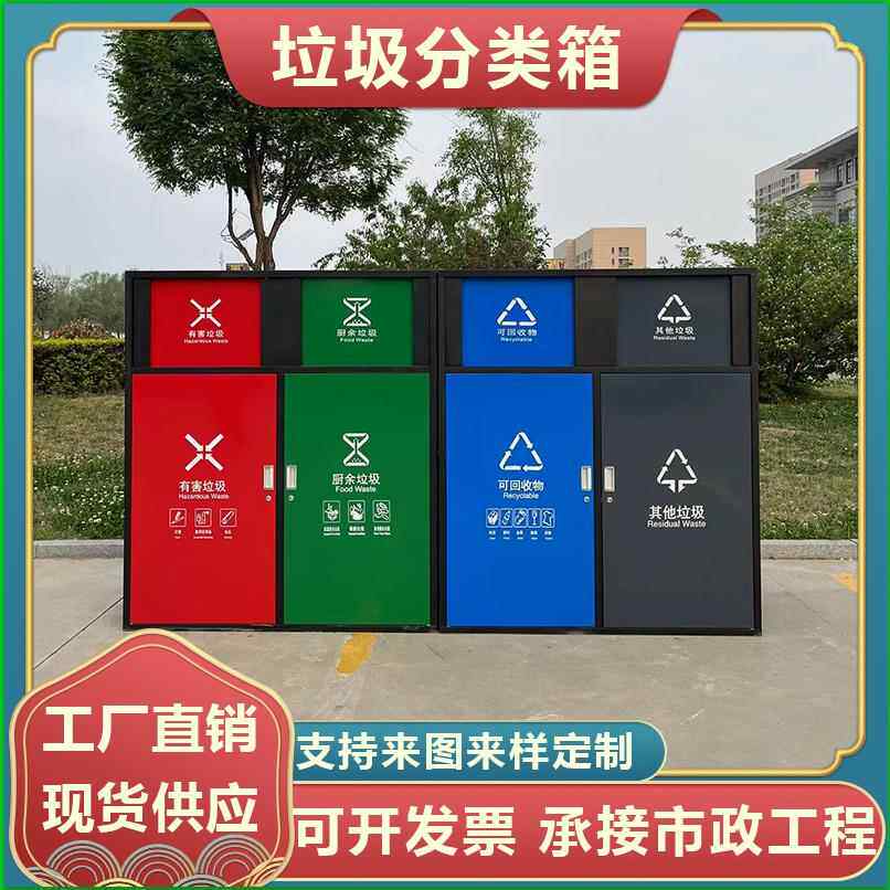 四分类果皮箱120L240L塑料桶金属外箱罩景区社区街道大号垃圾箱