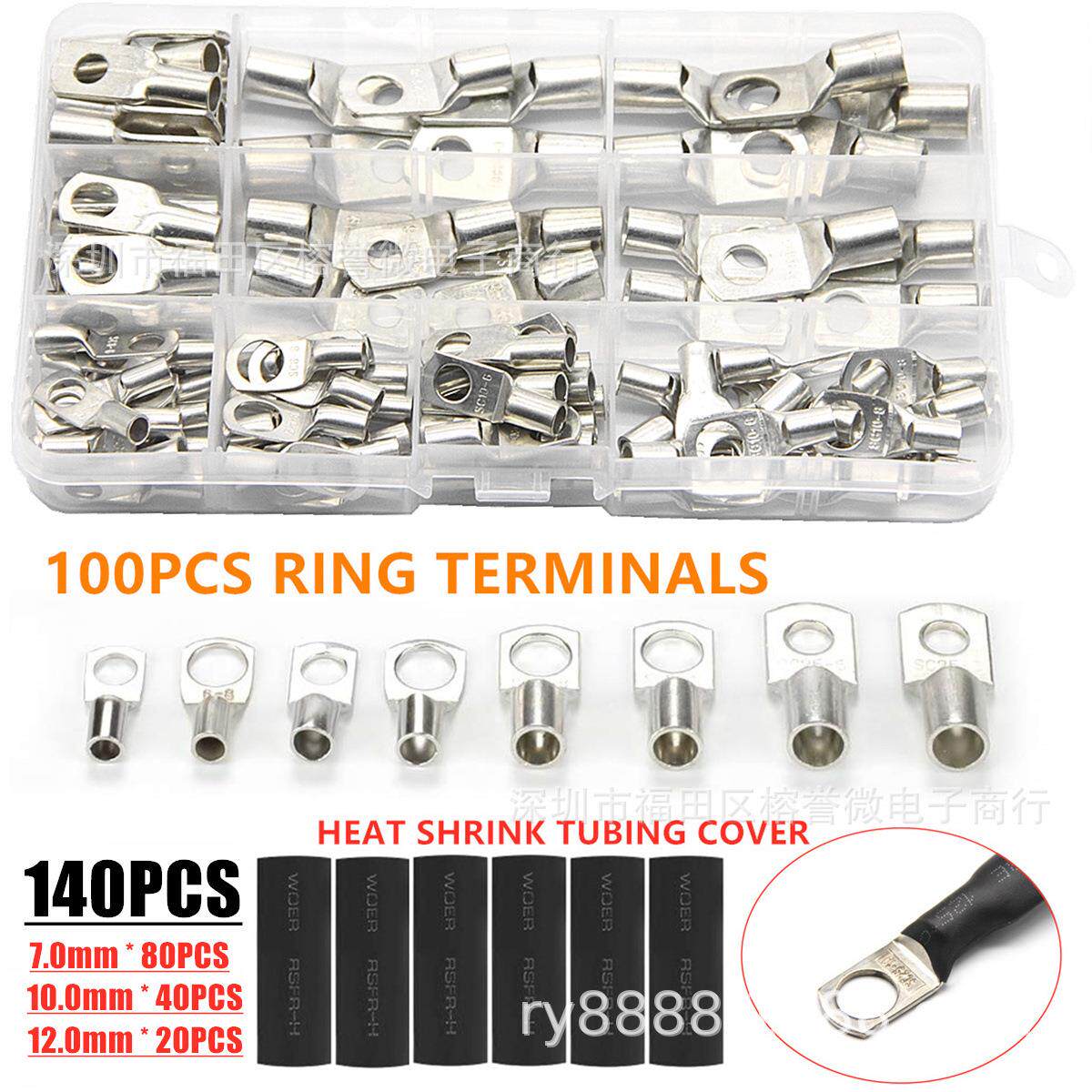 100-240PCS银色窥口端子 SC铜接线端子 冷压端子套装 铜端子盒装