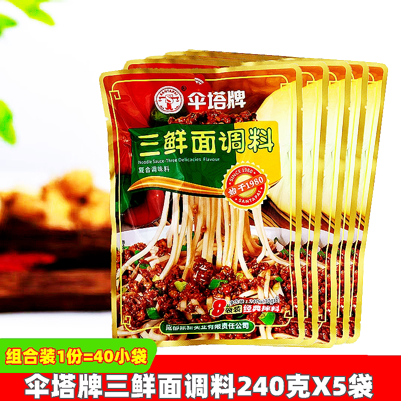 伞塔牌 三鲜面调料240gx5袋 面食调料拌面酱不辣三鲜面复合调味料