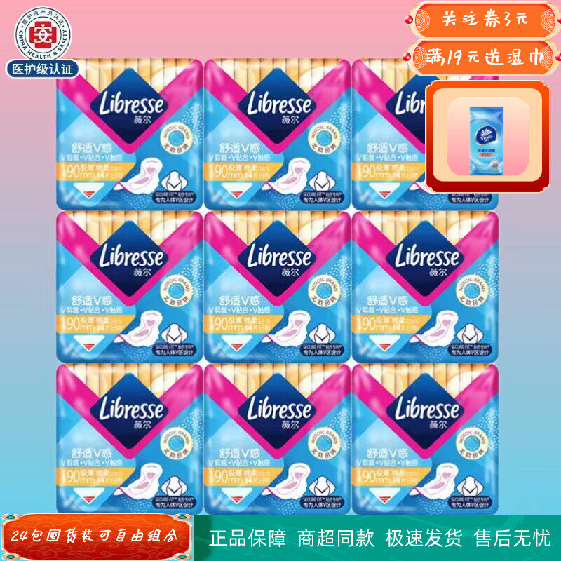 Libresse薇尔绵柔亲肤极薄日用190mm防侧漏姨妈巾24包336片卫生巾