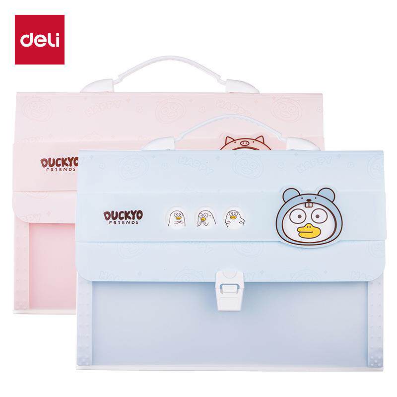 得力PM336手提风琴包试卷袋多层A4小刘鸭学生手拎式文件袋卷子夹
