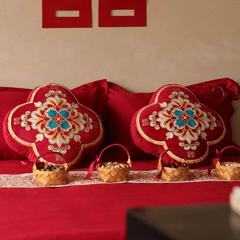 结婚抱枕一对垫沙发厅压床方主336客卧婚房布置男红色靠结婚用品