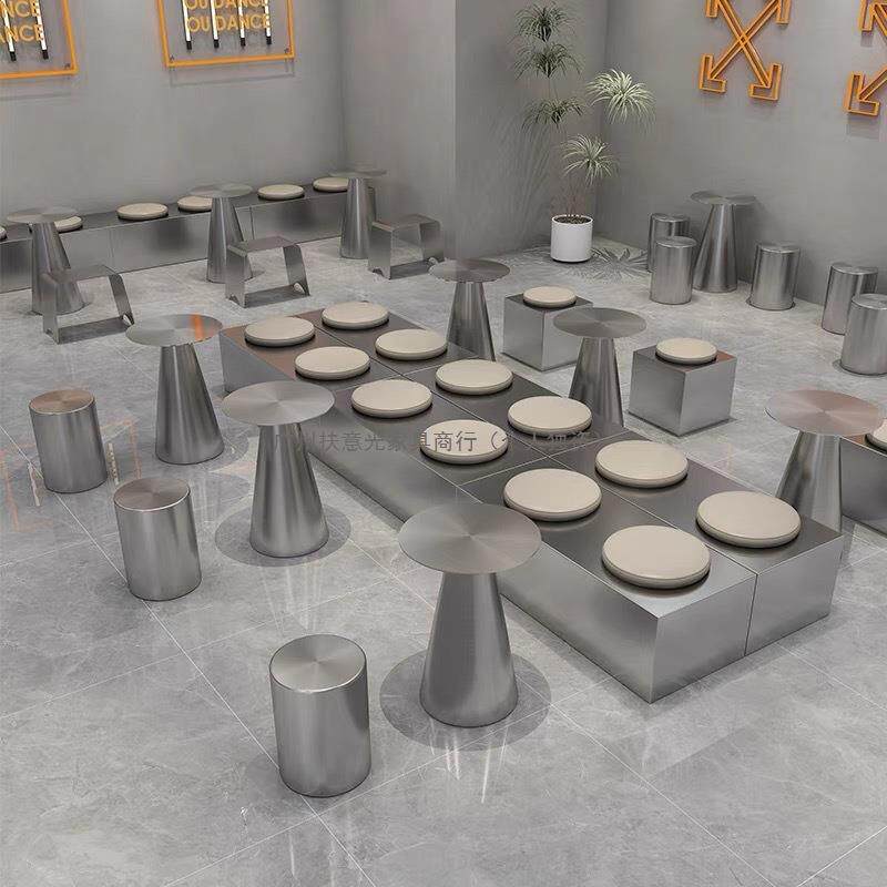 工业风咖钢啡厅墙卡座沙发奶茶甜靠品烘焙店不锈336桌椅组合厅餐