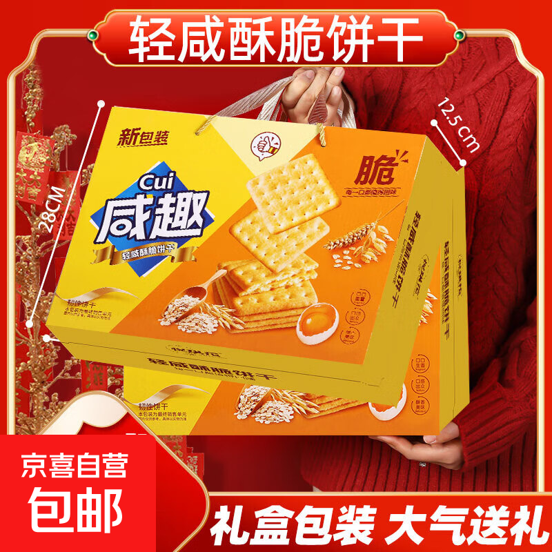 年货咸趣薄脆饼干1000g礼盒装咸味甜趣韧性早餐代餐饼干送礼团购 咸趣饼干礼盒装【带箱1000g*1盒】