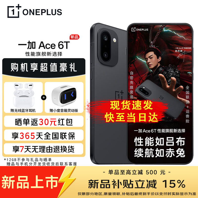 一加 【国家补贴减15%】Ace 6T 性能旗舰新选择 第五代骁龙 8 芯片 165Hz 超高刷电竞屏 8300mAh ace6t 闪速黑 16GB+512GB