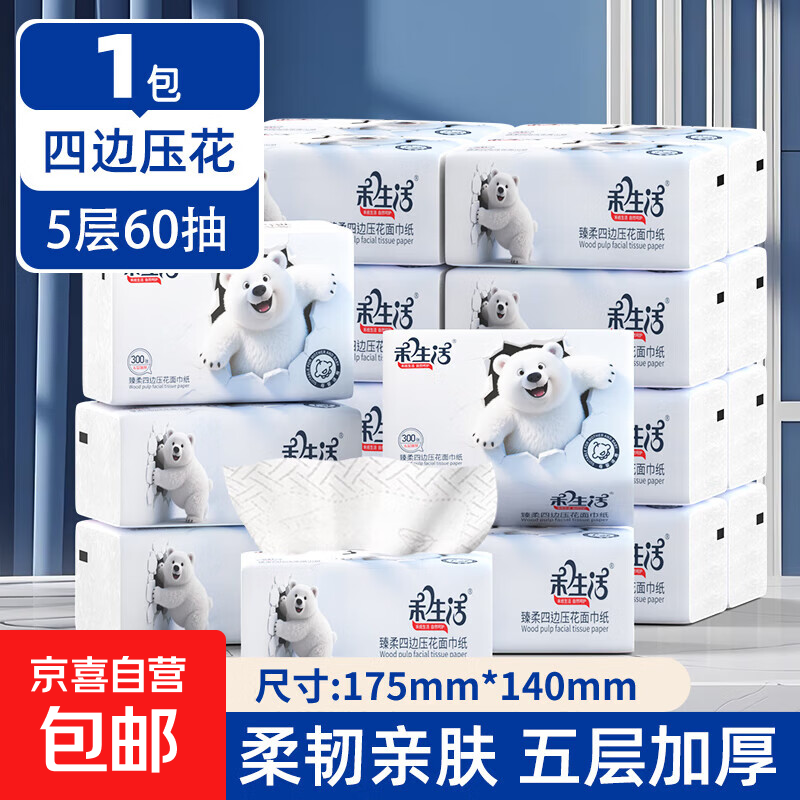 【天降神券】北极熊系列原生木浆抽纸大包家用卫生纸加大厚面巾纸 【试用装】 5层 300张*1包