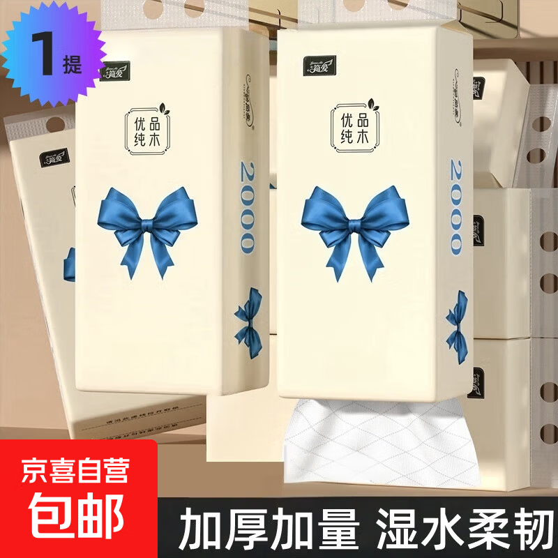 心动简爱1000张悬挂式抽纸平板卫生纸抽取式厕纸挂抽 超低价更划算: 4层 1000张 * 1提