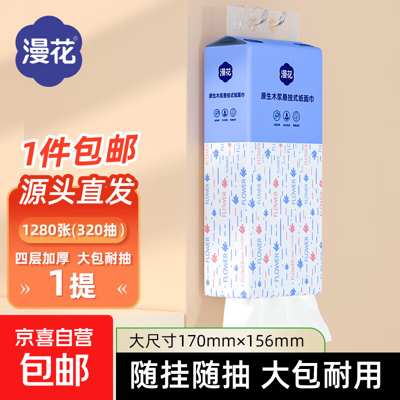 【活动专享】漫花1280张挂式抽纸大包卫生纸悬挂纸巾餐巾纸擦手纸 蓝色爆款 4层 1280张*1提