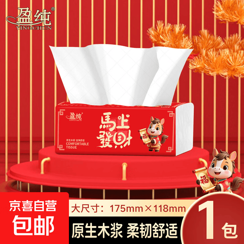 【真实惠】整箱6600张30包新年系原木抽纸餐巾纸面巾纸卫生纸装 新年系列原木抽纸 5层 220张*1包 随身装