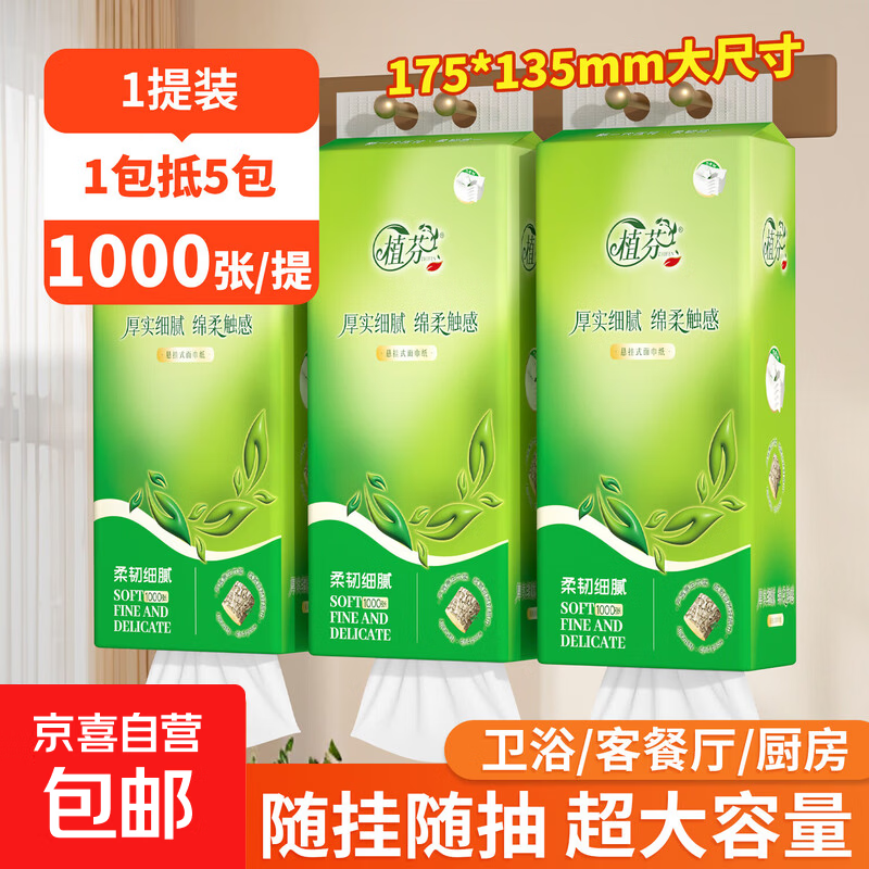 植芬1000张悬挂式抽纸面巾纸家用擦手纸餐巾纸实惠装卫生纸 4层 1000张*1提