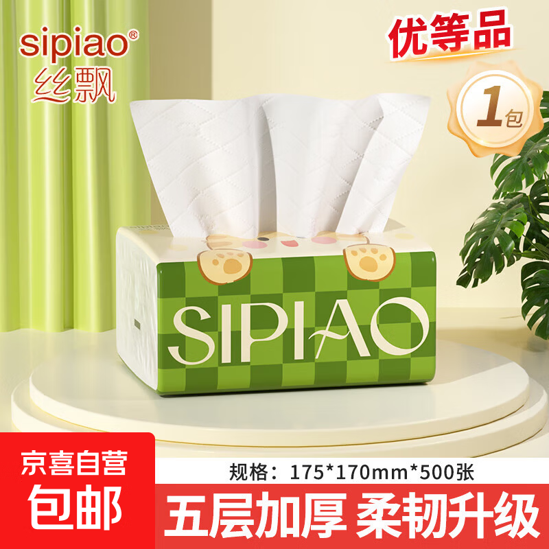 丝飘抽纸大包餐巾纸擦手纸亲肤适用 5层 500张*1包