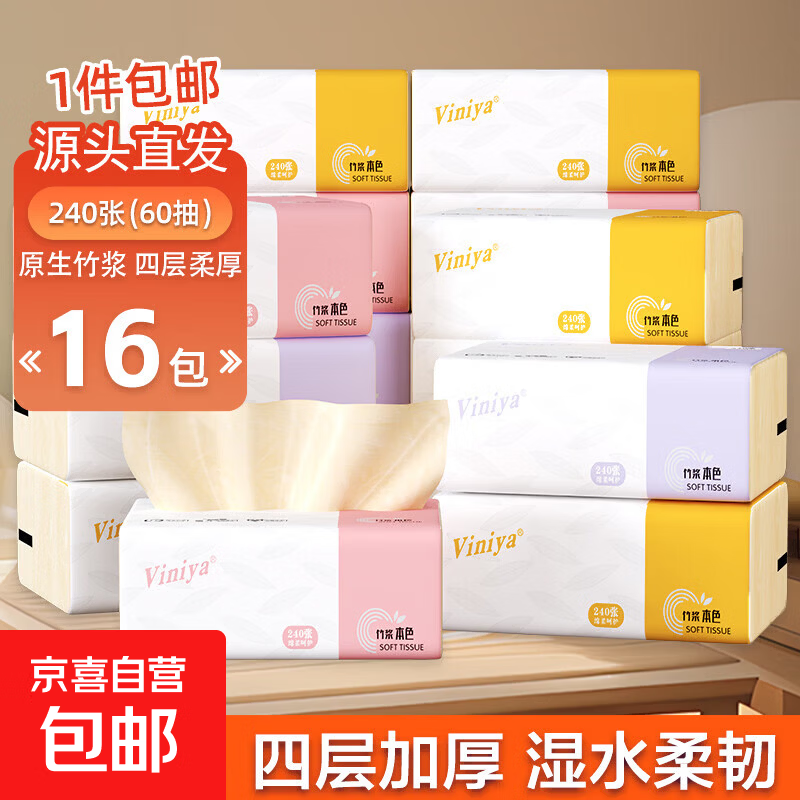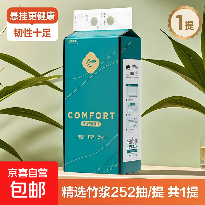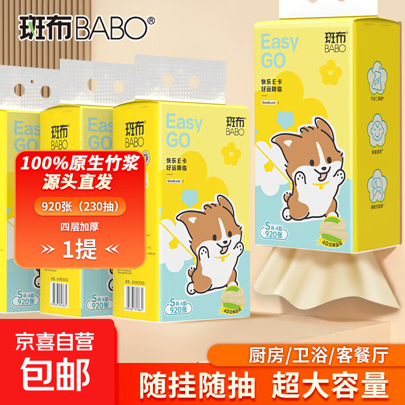 【斑布】安心抽悬挂式纸巾卫生纸巾竹浆纸抽4层加厚230抽920张 【贵在运费】天然竹浆920张*1提
