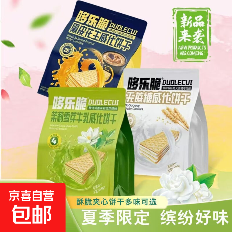 哆乐脆茉莉芝士牛乳雪芽威化蔗糖饼干酥脆办公室小零食解馋小零食 黑皮花生威化饼【108g/包】 1包装