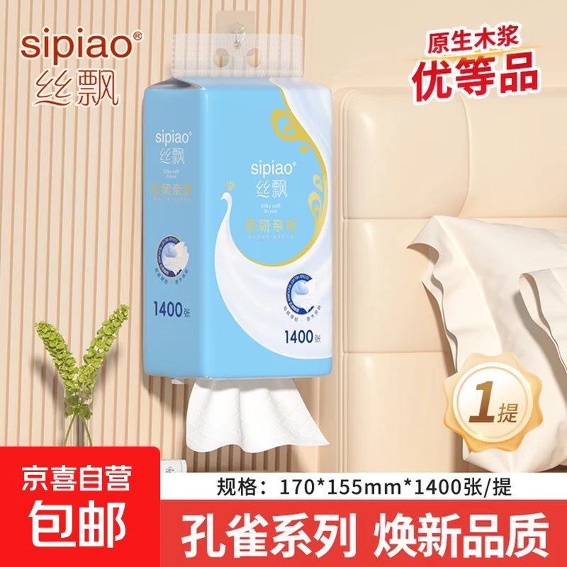 【优等品】丝飘悬挂式1400张抽纸家庭装日用抽纸卫生纸加厚高品质 5层 1400张*1包