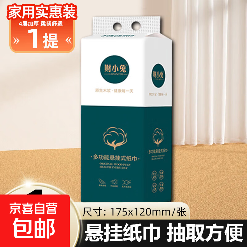 财小兔10提悬挂式抽纸家用餐巾纸面巾纸整箱装批发平板卫生纸厕纸 财小兔挂抽175-120尺寸 1提