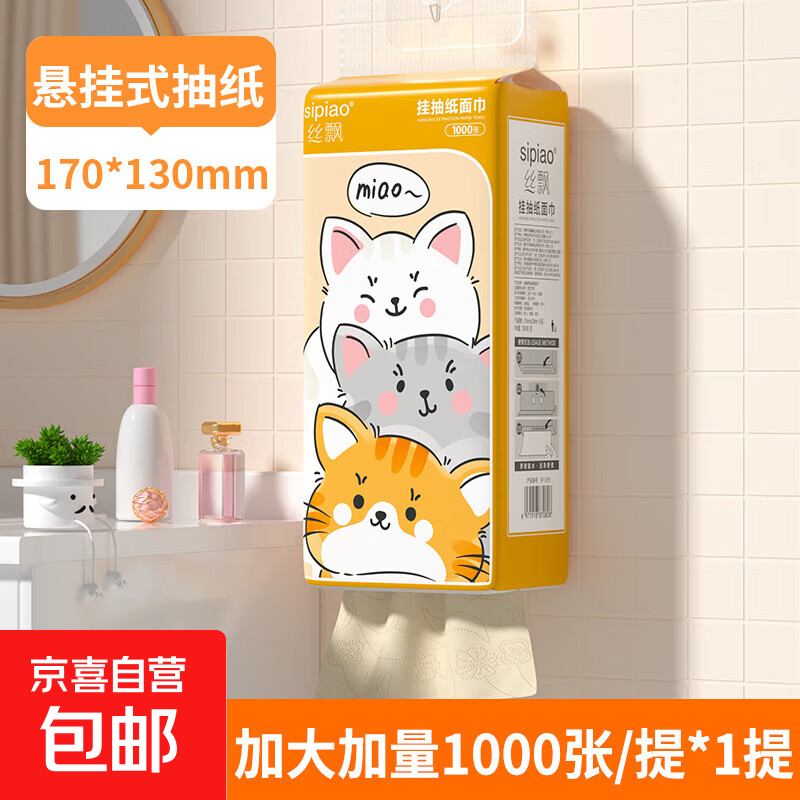悬挂式抽纸 萌宠来袭1000张大包餐巾纸本色卫生纸4层加厚活动专享 1提尝鲜装
