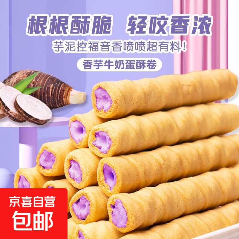 饼干礼盒200g整箱彩盒饼干随心配休闲零食健康好吃礼盒送礼 香芋蛋卷*1箱【48支/200g】彩箱装