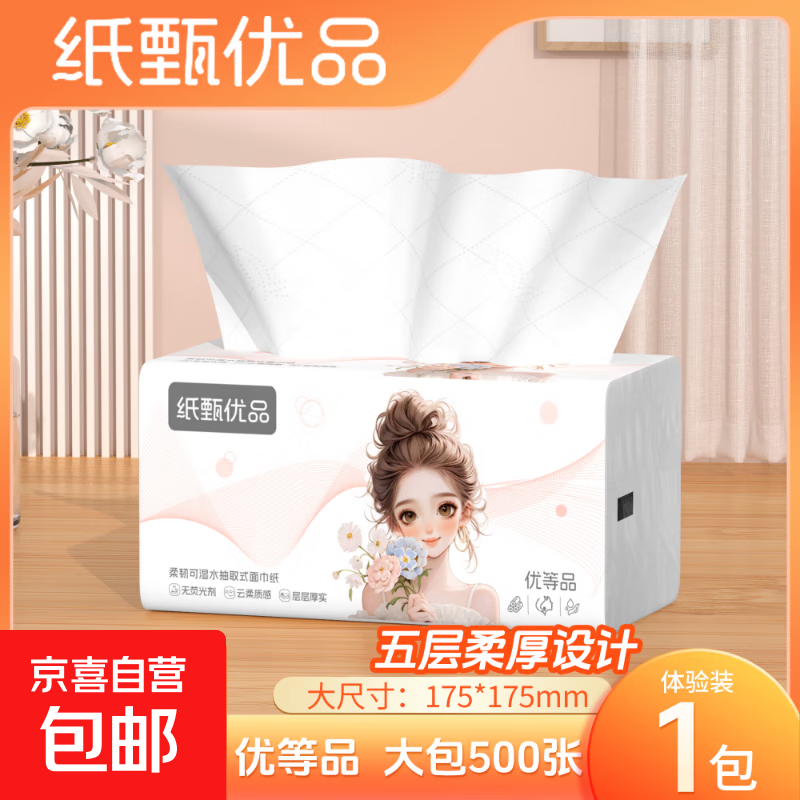 【天降神券】桔子姑娘大包抽纸480张加厚餐巾纸家用面巾纸母婴纸 5层 480张*1包 【L码试用装】