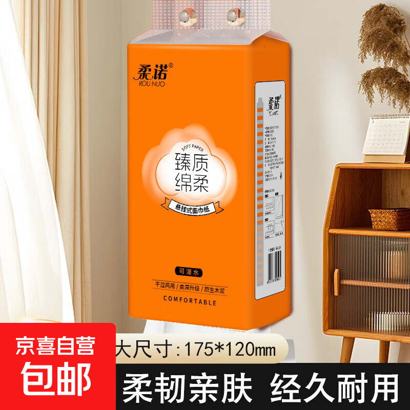 柔诺悬挂式抽纸面巾纸原生木浆无香柔韧环保320张/1提 2层 160抽*1提(无挂钩)