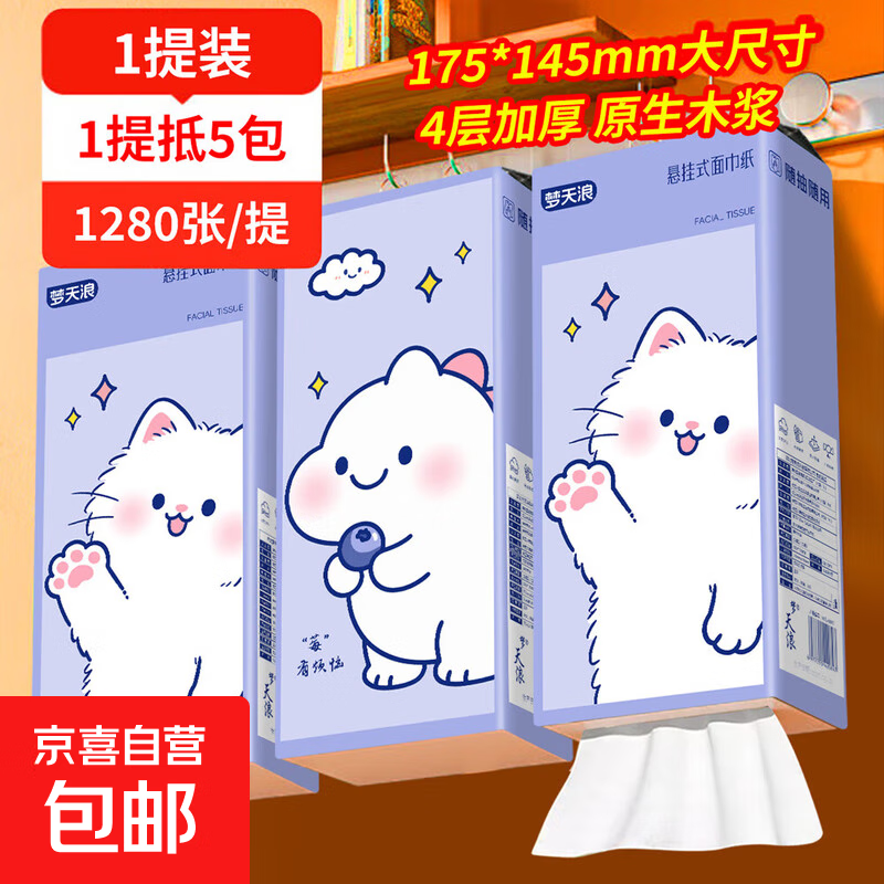 梦天浪大包悬挂式家用抽纸纸巾整箱擦手纸四层加厚可湿水 【加大加厚】四层1280张 1提